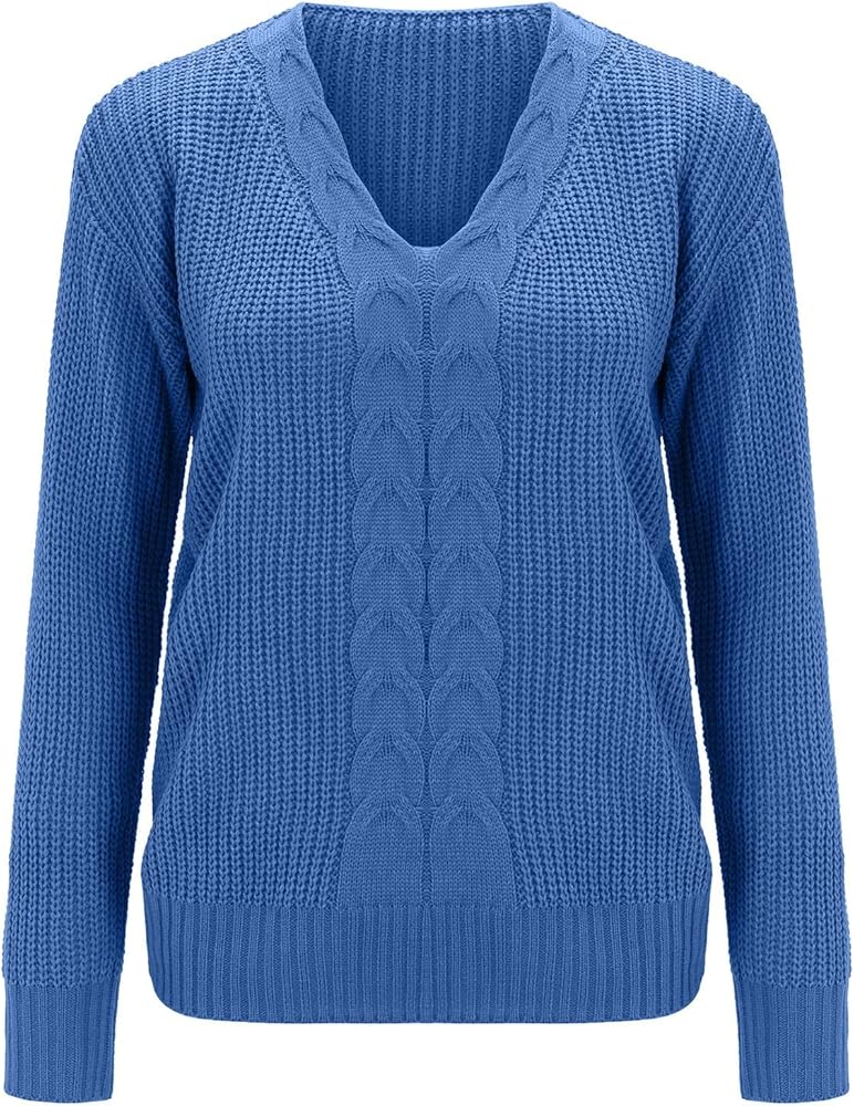 Suéteres de mujer para otoño e invierno, manga larga, color sólido, cuello en V, ajuste delgado, suéter de punto a la moda, suéteres para mujer con bolsillo, aspecto muy bonito, azul, S :