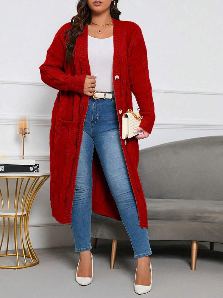 SHEIN LUNE Suéter En Cardigan Largo Para Mujer De Talla Grande Con Cierre De Botones Y Color Sólido | Mode de Mujer | SHEIN España