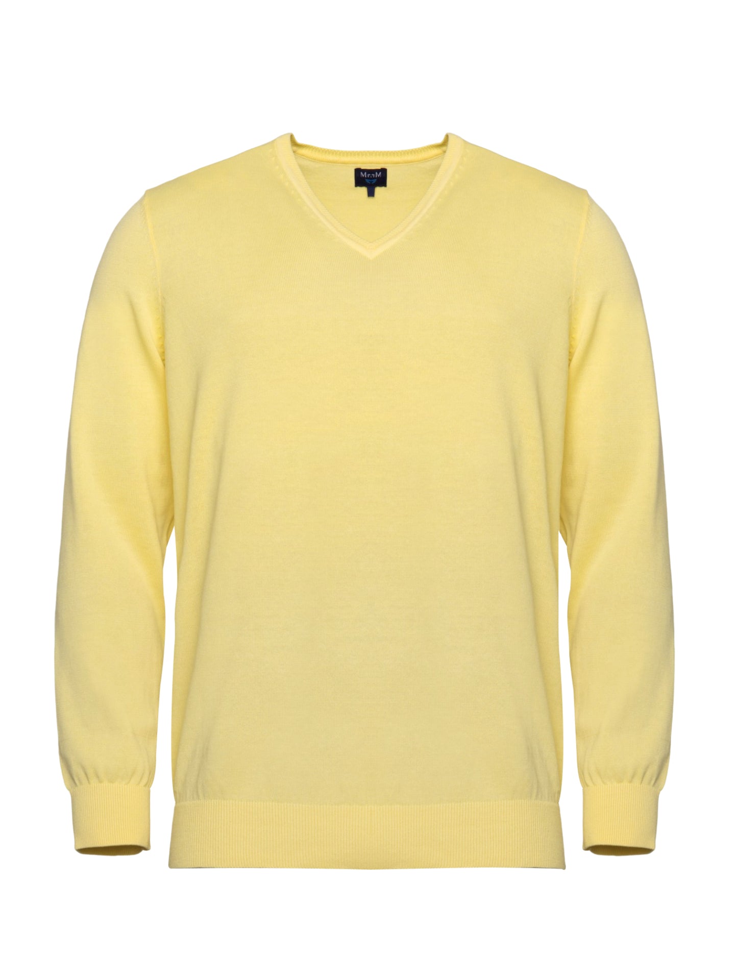 Suéter de algodón amarillo con cuello en V – Mr Blue
