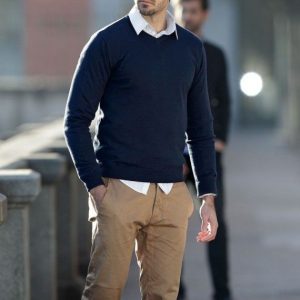 Suéter casual de * larga para hombre Cuello * * poliéster * * para * y otoño, suéter de uso * | * * | Construcción tejida