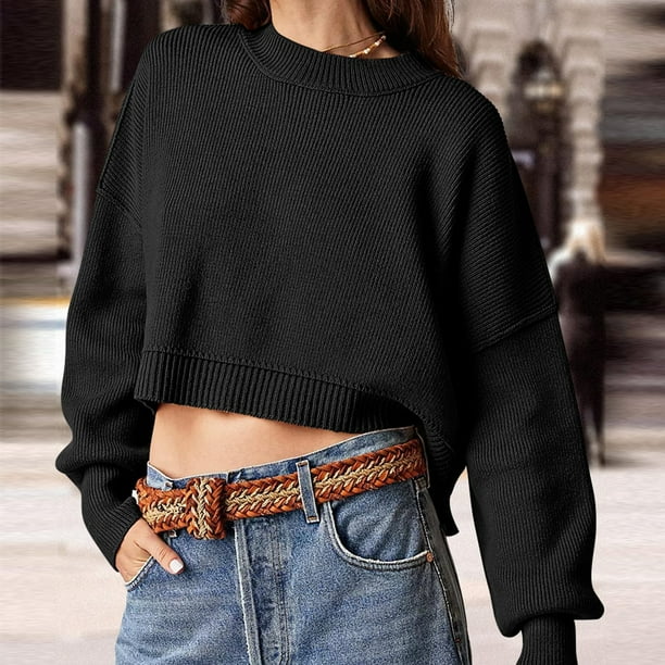 Suéter Jersey de cuello redondo para mujer Jersey de punto informal Suéter corto Suéter de color sólido Tops Cgtredaw Negro M para Mujer | Bodega Aurrera en línea