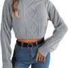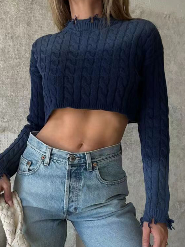 Emmiol Envío gratis 2025 Suéter corto tejido de ochos con cuello deshilachado liso Azul marino L de Suéteres en la tienda en línea. | EMMIOL
