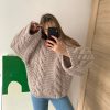Suéter holgado de lana color caqui de gran tamaño tejido a mano para mujer, cárdigan de punto trenzado Etsy España
