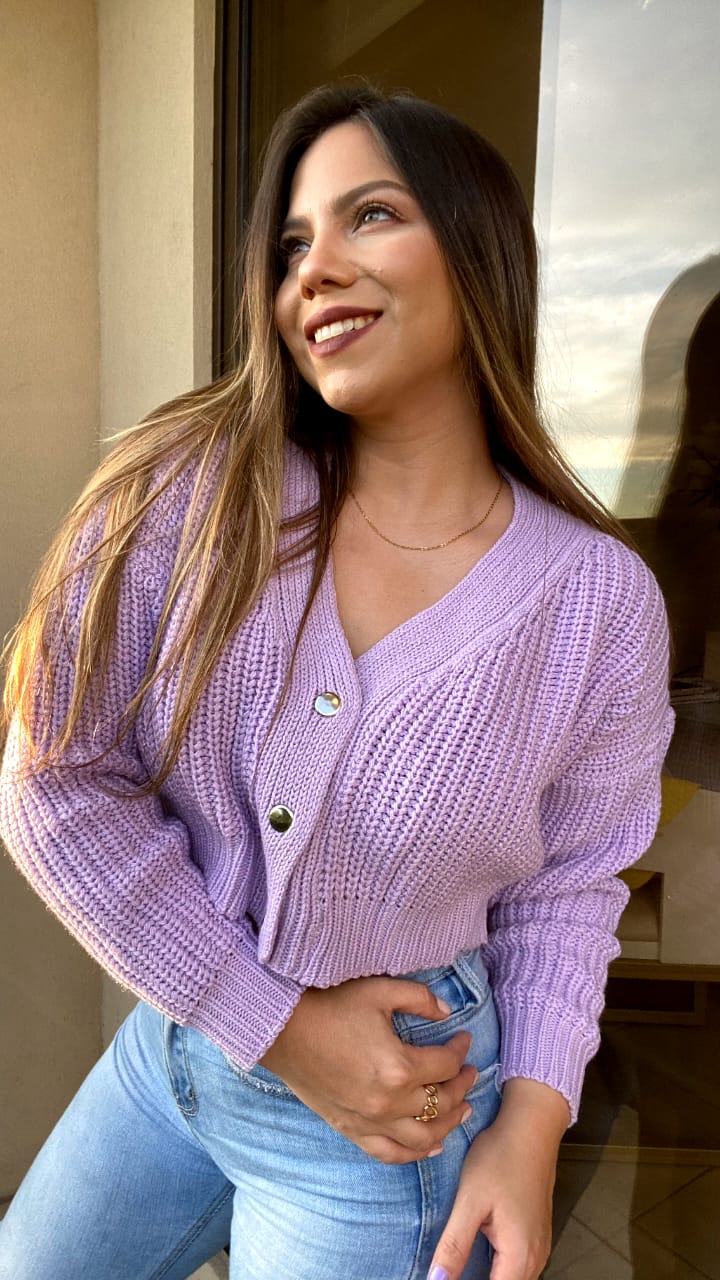 Suéter Tejido Botones Lila