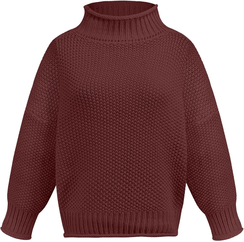 Suéteres para mujer, suéter de punto de hilo grueso, suéter de cuello alto para mujer, de moda para otoño e invierno, suéter de punto, Vino, S : …