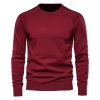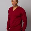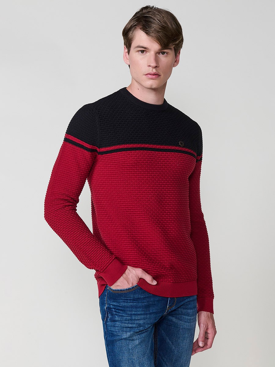 Jersey rojo de hombre en tricot con cuello redondo y manga larga. Confección 100% acrílico para un estilo moderno y atemporal.