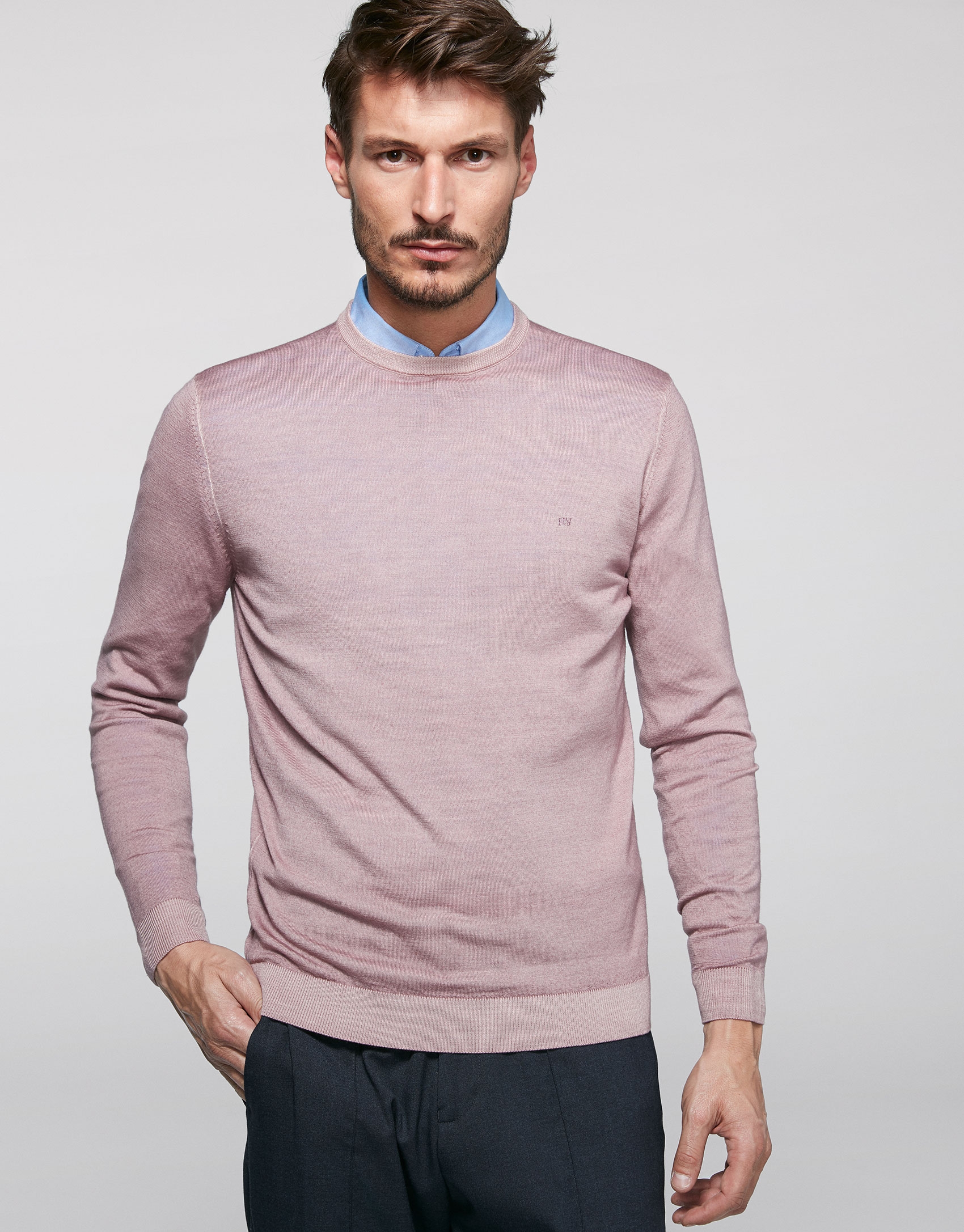 Jersey cuello caja lana tintada rosa Hombre | Roberto Verino