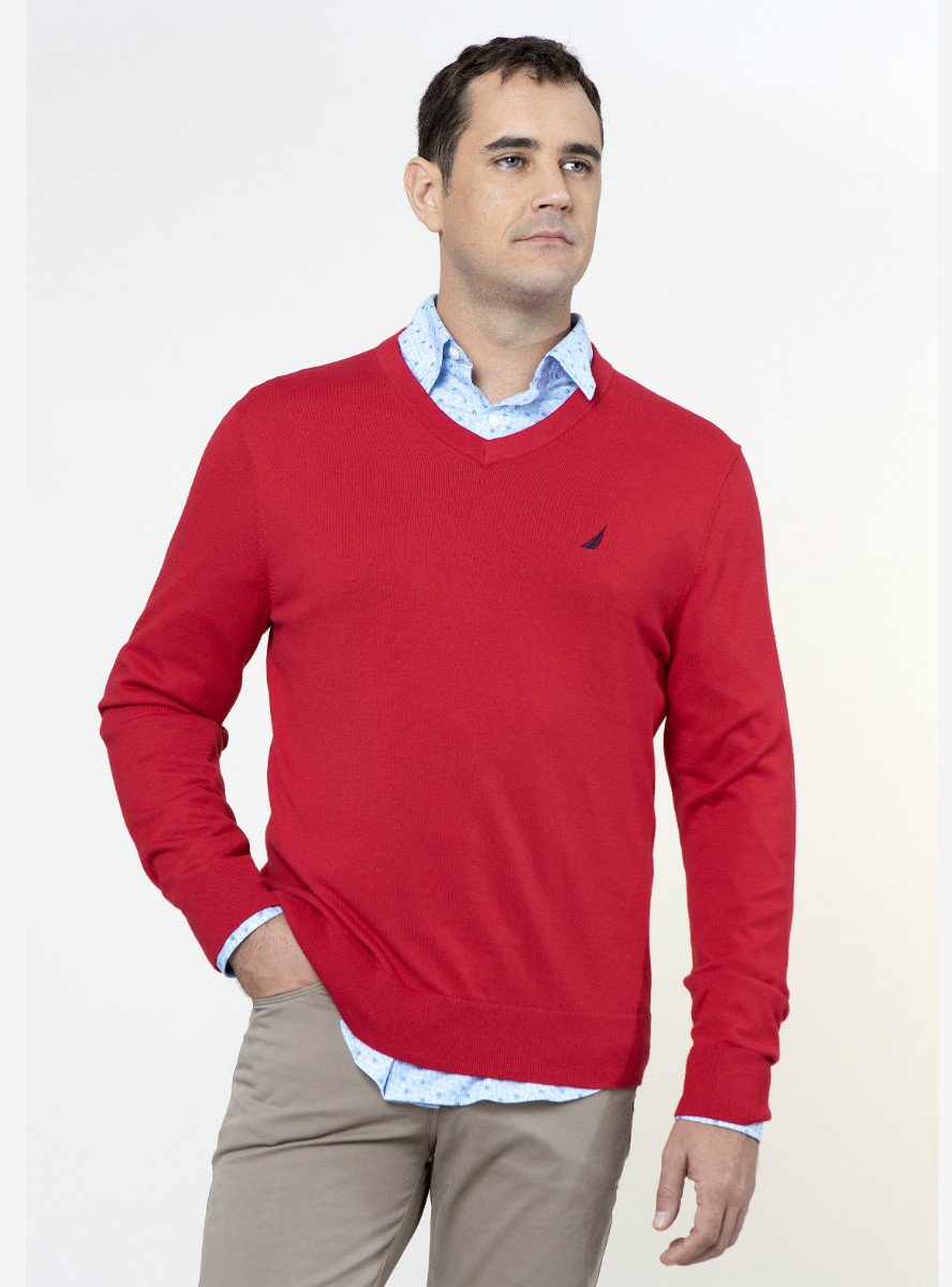 Sueter Tejido Sweater Cuello V Hombre Sweater Manga Larga Cuello V Solido Hombre