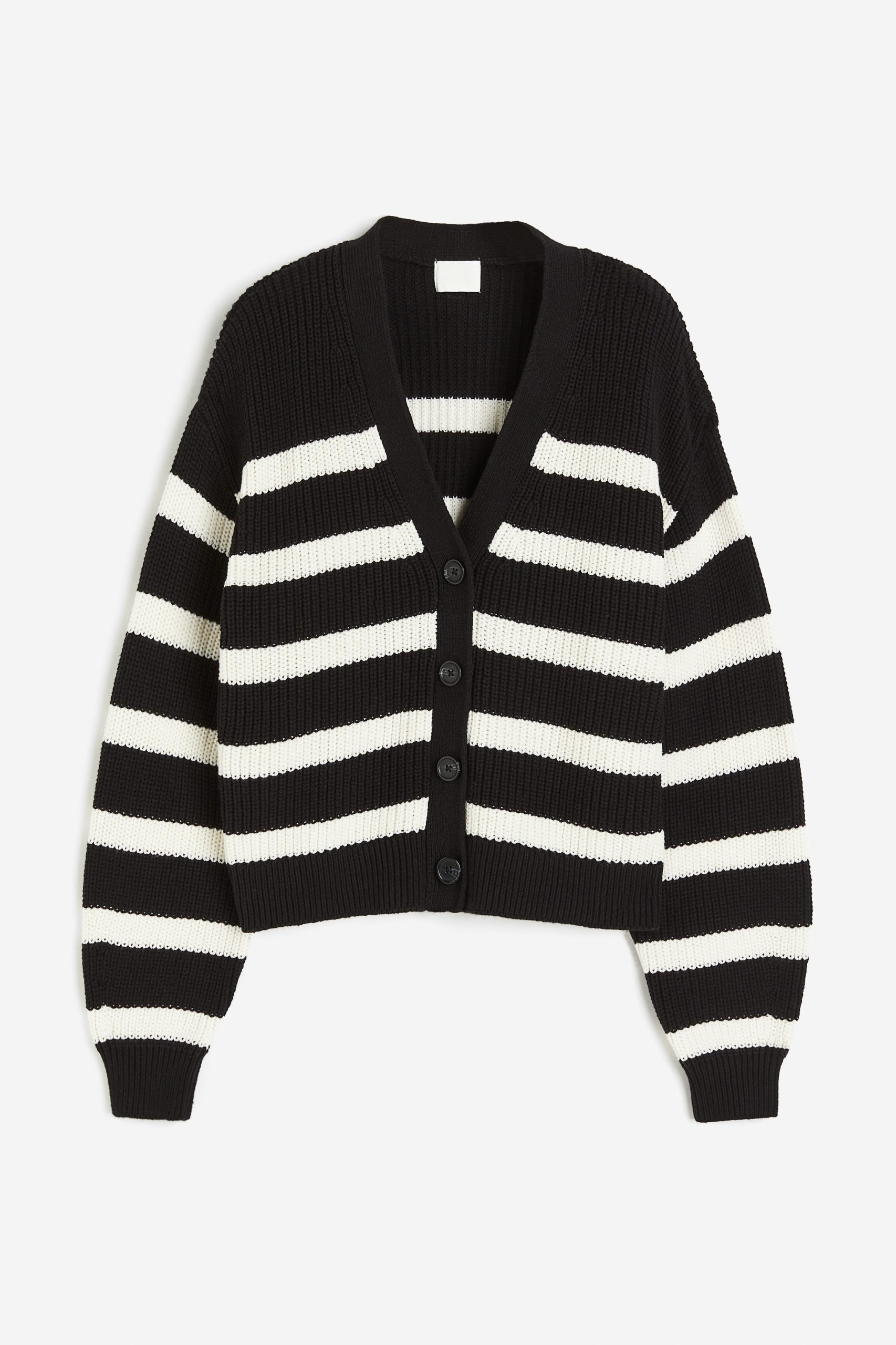 Cárdigan en punto de canalé Negro/Rayas blancas MUJER | H&M ES