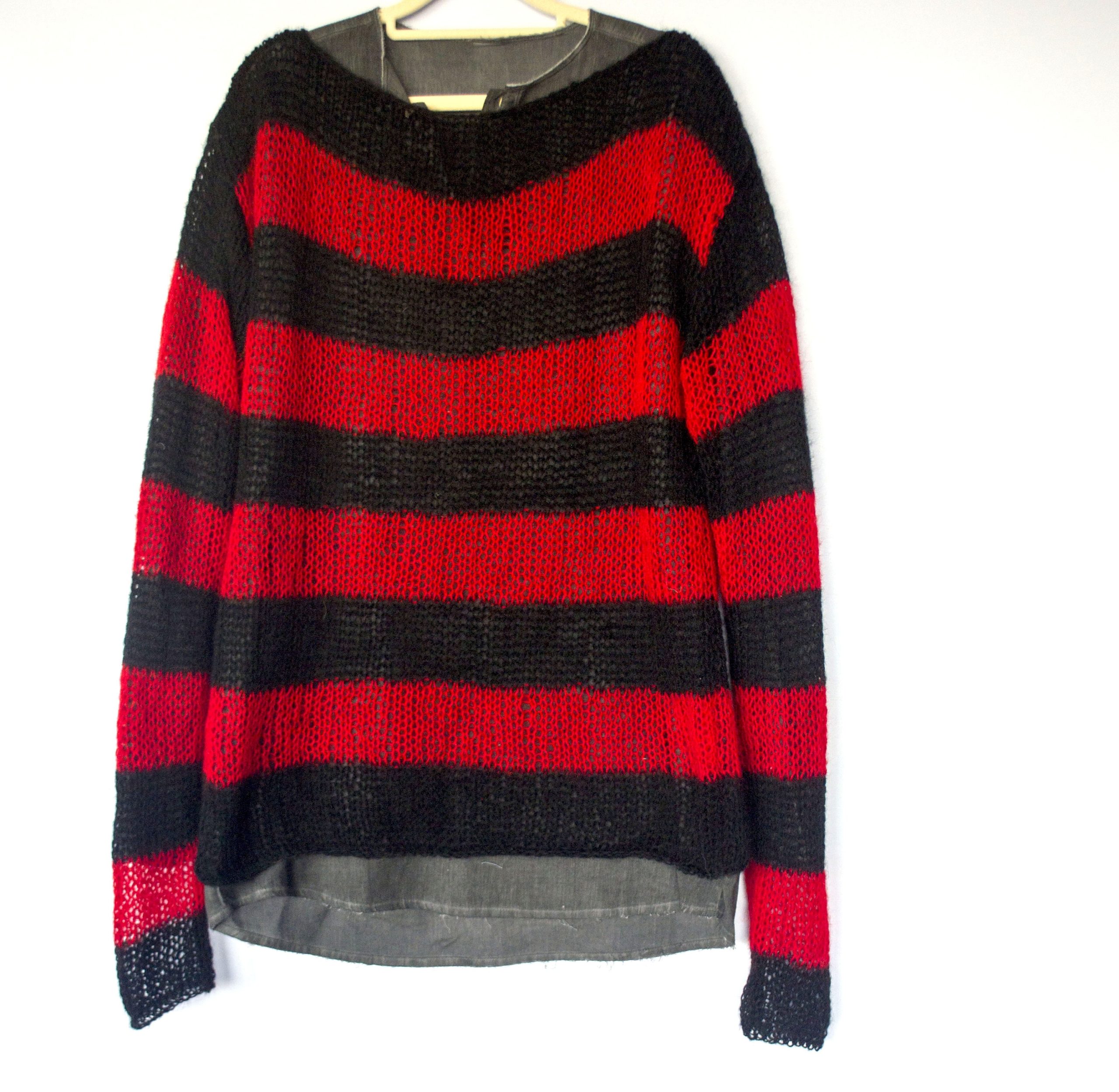 Suéter de mohair unisex, jersey de rayas rojas y negras, jersey de rayas rojas, ropa negra, suéter de mohair estilo punk para hombre y mujer de myAqua Etsy España