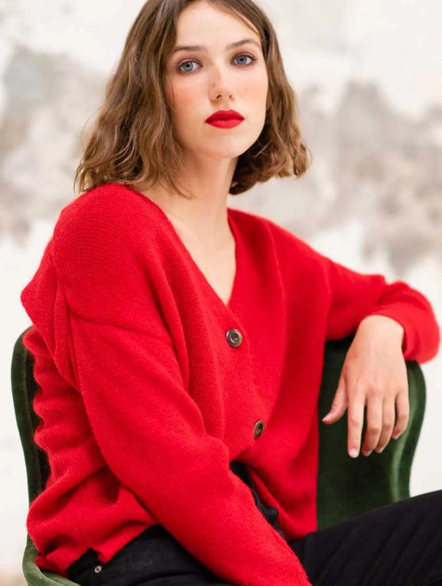 Cardigan mohair rojo para mujer . Ropa sostenible Fieito