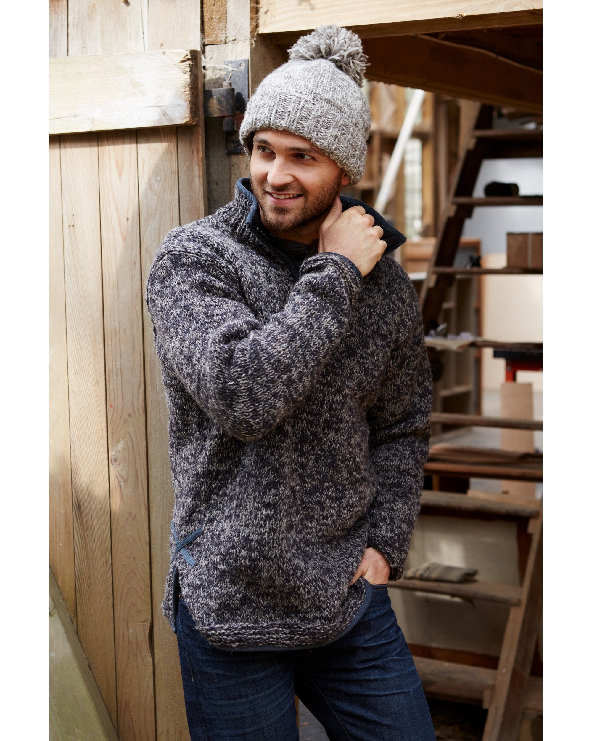 Suéter de hombre color carbón con media cremallera Suéter negro para hombre Suéter gris para hombre Cuello forrado de polar 100 % lana Suéter para él Pachamama Etsy España